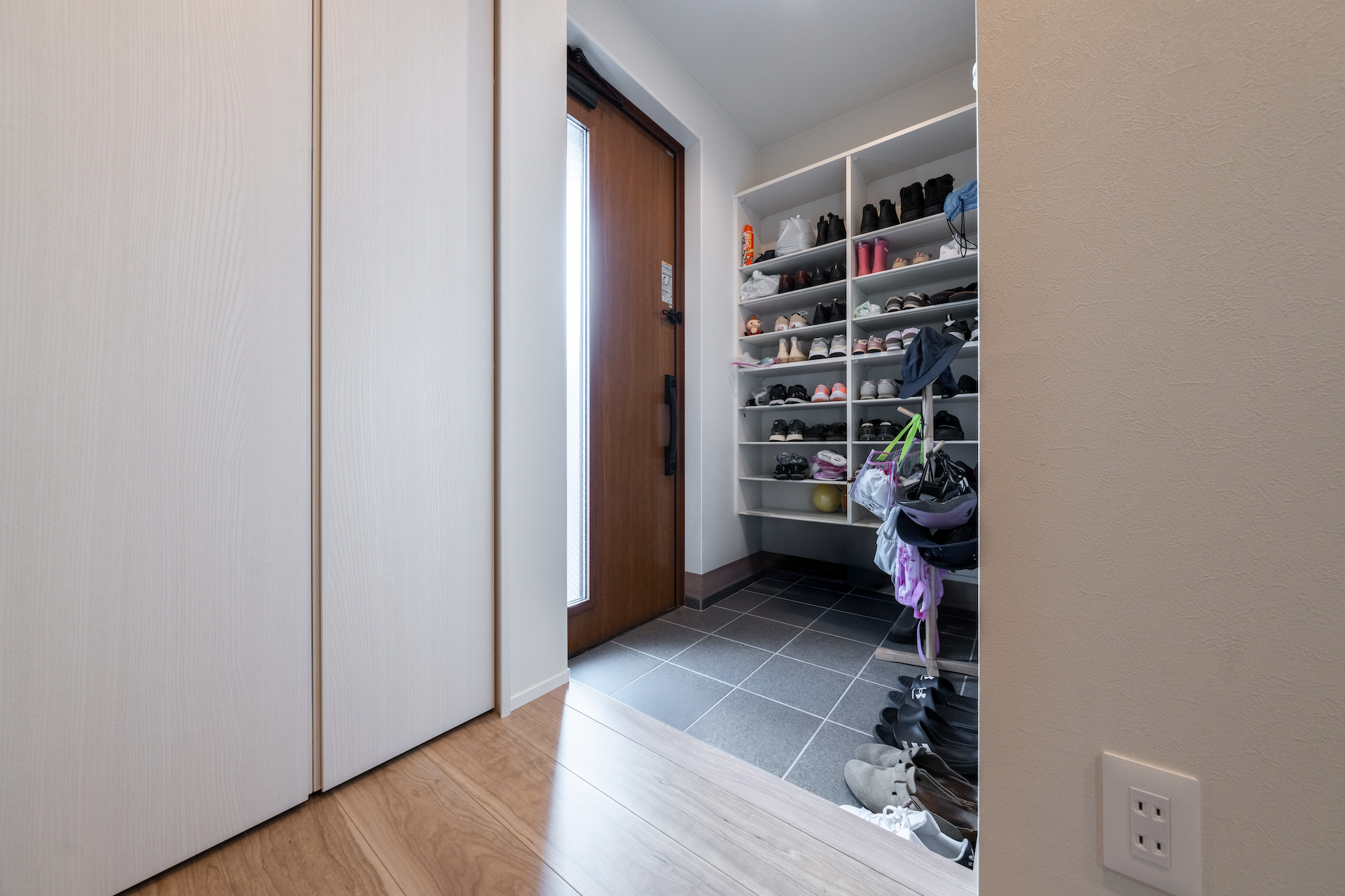 室内干しに対応するための天井金物や換気計画も整え、天候や時間帯に左右されにくい使い勝手を確保しています。
