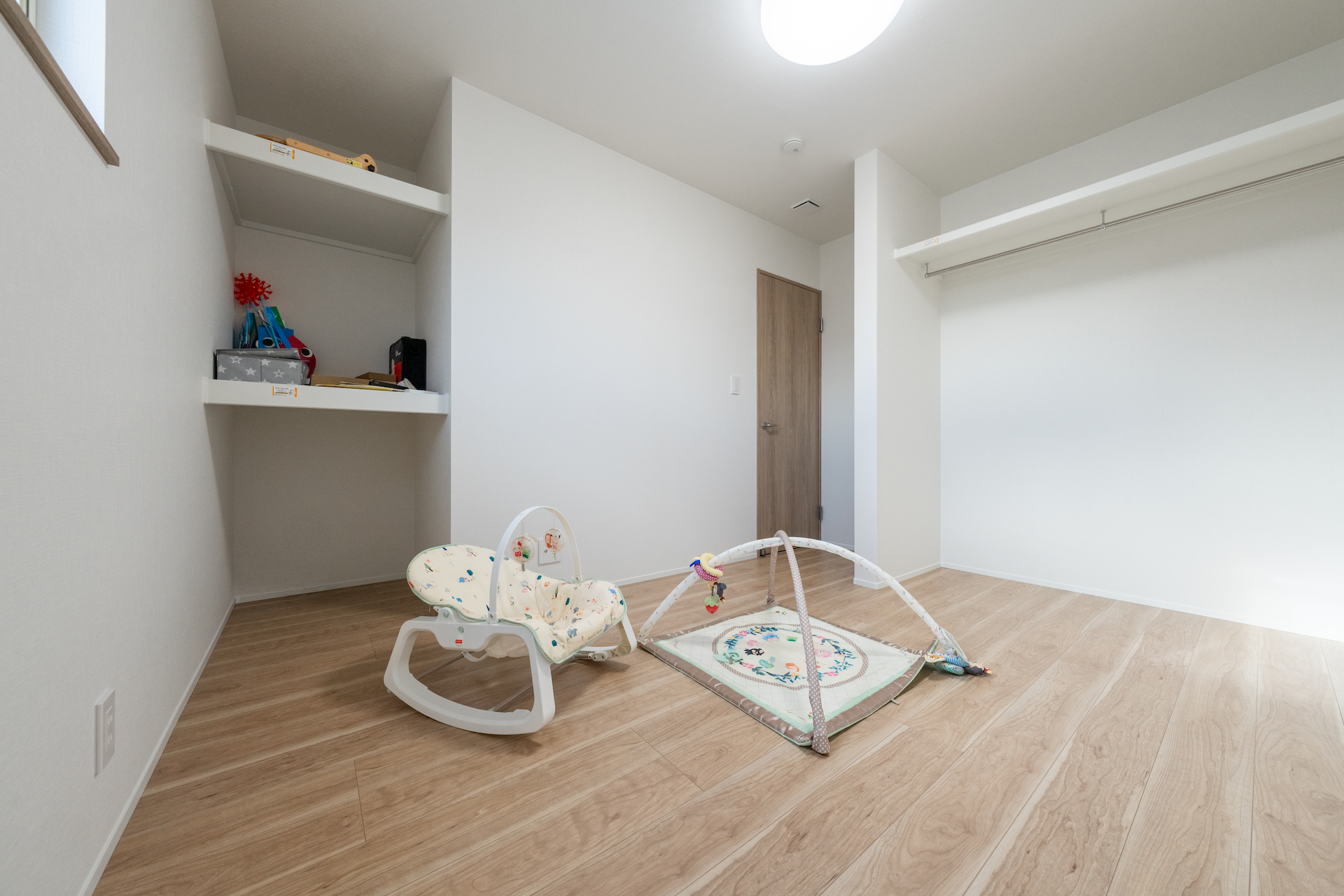 また、壁面のカウンターや収納計画により、遊び・学び・片付けまでが自然につながるよう配慮しました。