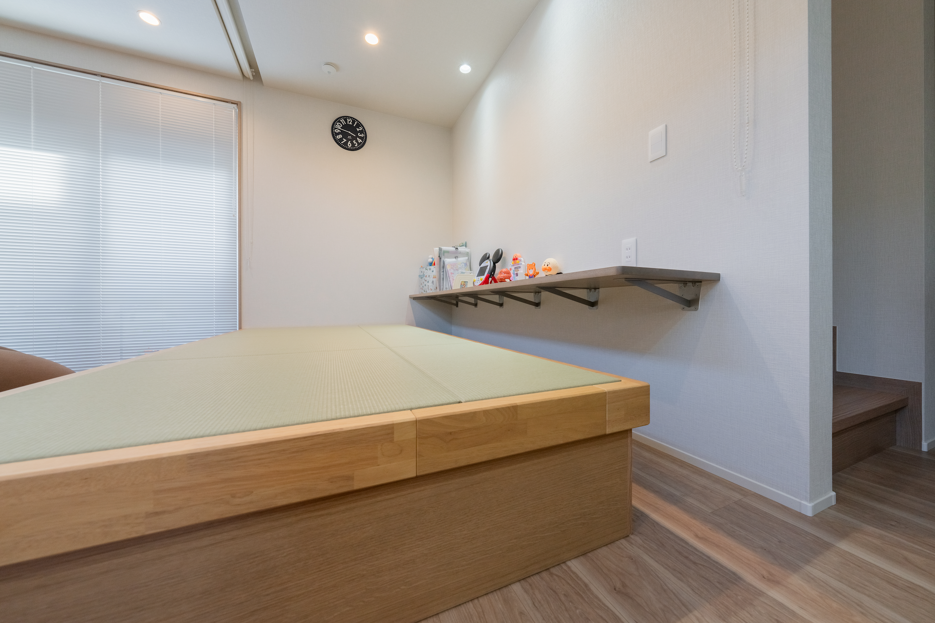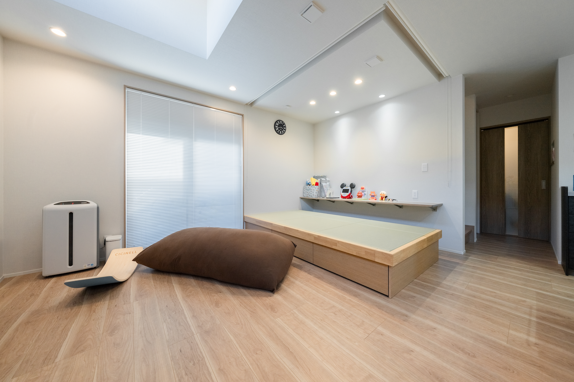 畳のやわらかな質感は、子どもの遊び場やお昼寝の場として安心感をもたらし、時には腰掛けたり、家族で並んで過ごしたりと、多様な使い方を受け止めます。